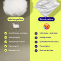 - Hypoalergenní a prémiová kvalita – Ne každá merino vlna je stejná. My používáme pouze vlákna nejvyšší třídy – mimořádně jemná, hebká a šetrná k pokožce, která nepíchají ani nepronikají skrz potah. Zároveň jsou výjimečně odolná, takže si zachovávají svůj tvar, vzhled i komfort po dlouhé roky.