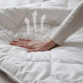 Vlákna se při vyšší teplotě jemně otevřou a propouštějí přebytečné teplo. Když je chladno, uzavřou se a udrží ho u těla — díky tomu vám pod přikrývkou nikdy není ani příliš teplo, ani příliš chladno.
