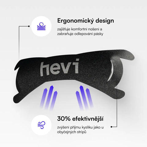 Hevi™ Páska na nos mírně roztahuje nosdry čímž zajišťuje, že každým nádechem přijmete až o 30% více kyslíku. To přispívá k lepšímu okysličení mozku, hlubšímu spánku, menšímu riziku chrápání a kvalitnější regeneraci těla během noci.